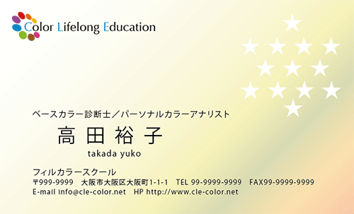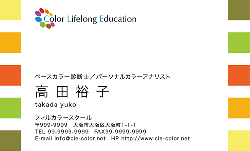 NPO法人色彩生涯教育協会(CLE協会)ブランド|カラーで活動する人のためのベースカラーに特化したプロショップ NPO法人色彩生涯教育協会ブランド(Brand CLE)|CLEテンプレート名刺